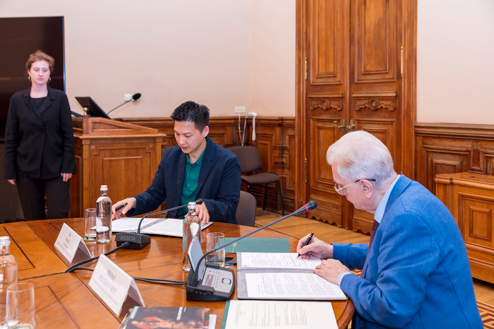 协议由埃尔米塔日博物馆馆长米哈伊尔·皮奥特罗夫斯基与北京分水岭科技有限公司首席执行官王珂先生共同签署。根据协议,新合作伙伴将与中国国家文化交流中心共同协助埃尔米塔日博物馆与中国主要博物馆建立合作关系。计划合作内容包括展览项目、学术研讨会和教育计划。